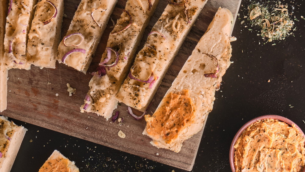 Focacciaen kan nu serveres med kryddersmørret og nydes! 😍