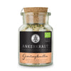 Havsalt, tørret gulerod*, løg*, selleri*, sennepsmel*, porre*, persille*, sort peber*, hvidløg*, løvstikke*, muskatnød*, gurkemeje*, fennikelfrø* *økologisk dyrket